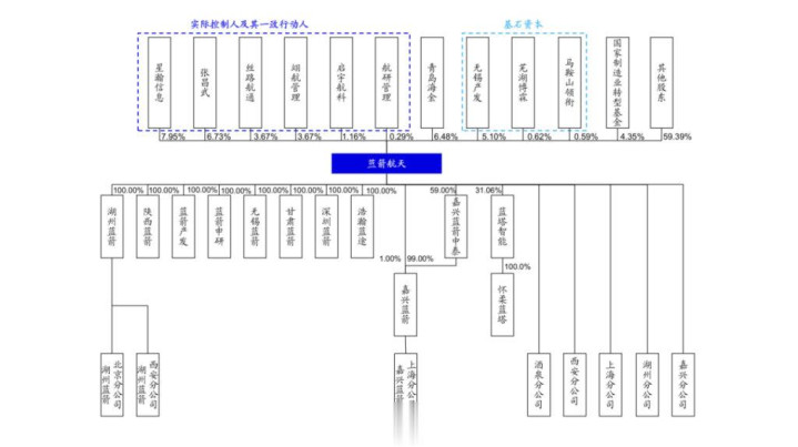 招股书显示,蓝箭航天实控人张昌武(蓝箭航天创始人兼CEO)直接持有公司6.7277%股份,并作为星瀚信息、翊航管理、丝路航通、启宇航科、航研管理的执行事务合伙人控制合计23.4724%股份。同时,公司设置表决权差异安排,股东张昌武、星瀚信息、丝路航通、翊航管理、启宇航科所持股份为特别表决权股份,公司其他股东所持股份为普通股份,每一特别表决权股份拥有的表决权数量与每一普通股份拥有的表决权数量比例为10:1。张昌武共计控制蓝箭航天75.2019%的表决权。